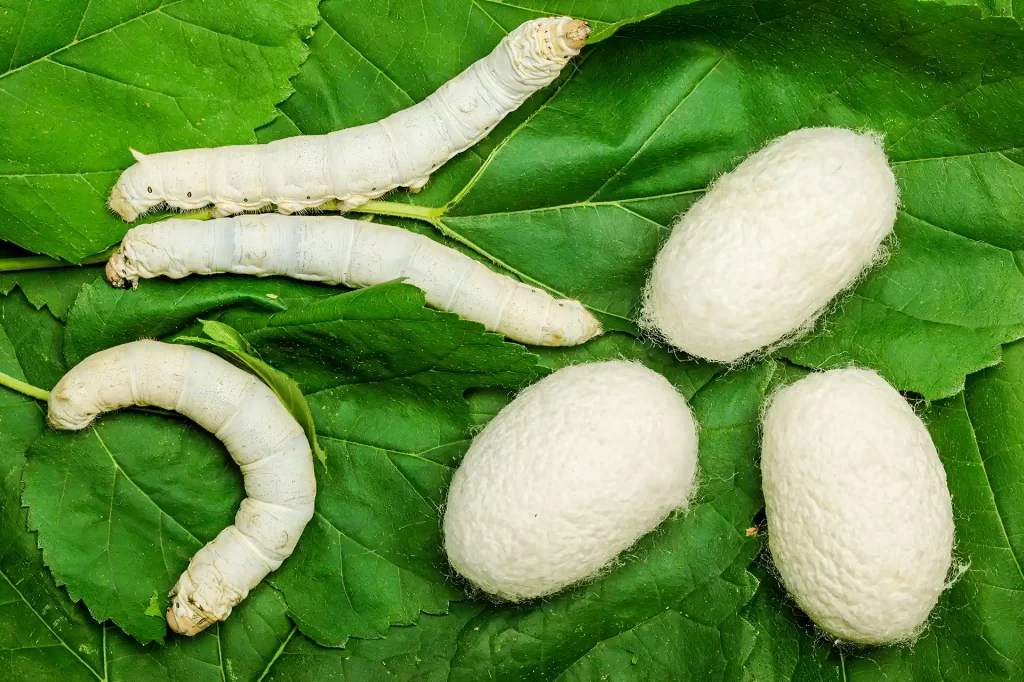 Производство шелковой ткани начинается с разведения шелкопрядов. Маленькие гусеницы шелкопряда питаются листьями тутового дерева, которое традиционно выращивается на территориях, где шелкопрядение является важной частью культуры. Эти гусеницы вырастают и начинают плести свои коконы, которые состоят из тончайших шелковых нитей.