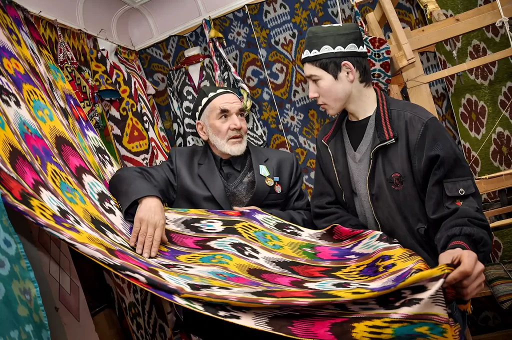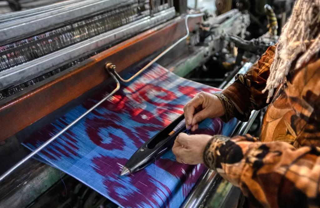 Процесс ткачества может занимать несколько недель, в зависимости от сложности узора и размеров ткани. Каждый метр ткани — это результат тяжелого труда и мастерства, который воплощает в себе богатство узбекских традиций и культуру.